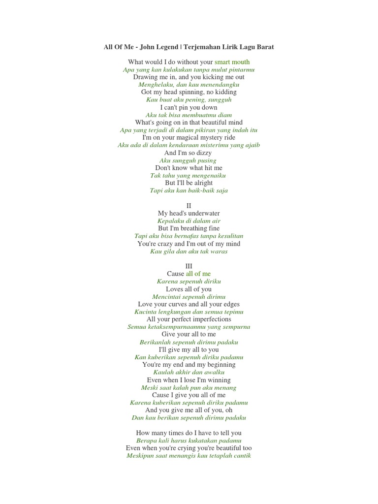 Descarga canciones RÁPIDO y FÁCIL. Descargar Lagu john legend all of me download mp3 MP3 Gratis 705 MB. ALL OF ME JOHN LEGENDLIRIK DAN TERJEMAHAN BAHASA INDONESIAMau bikin pacar anda mencret-mencret karena geer.